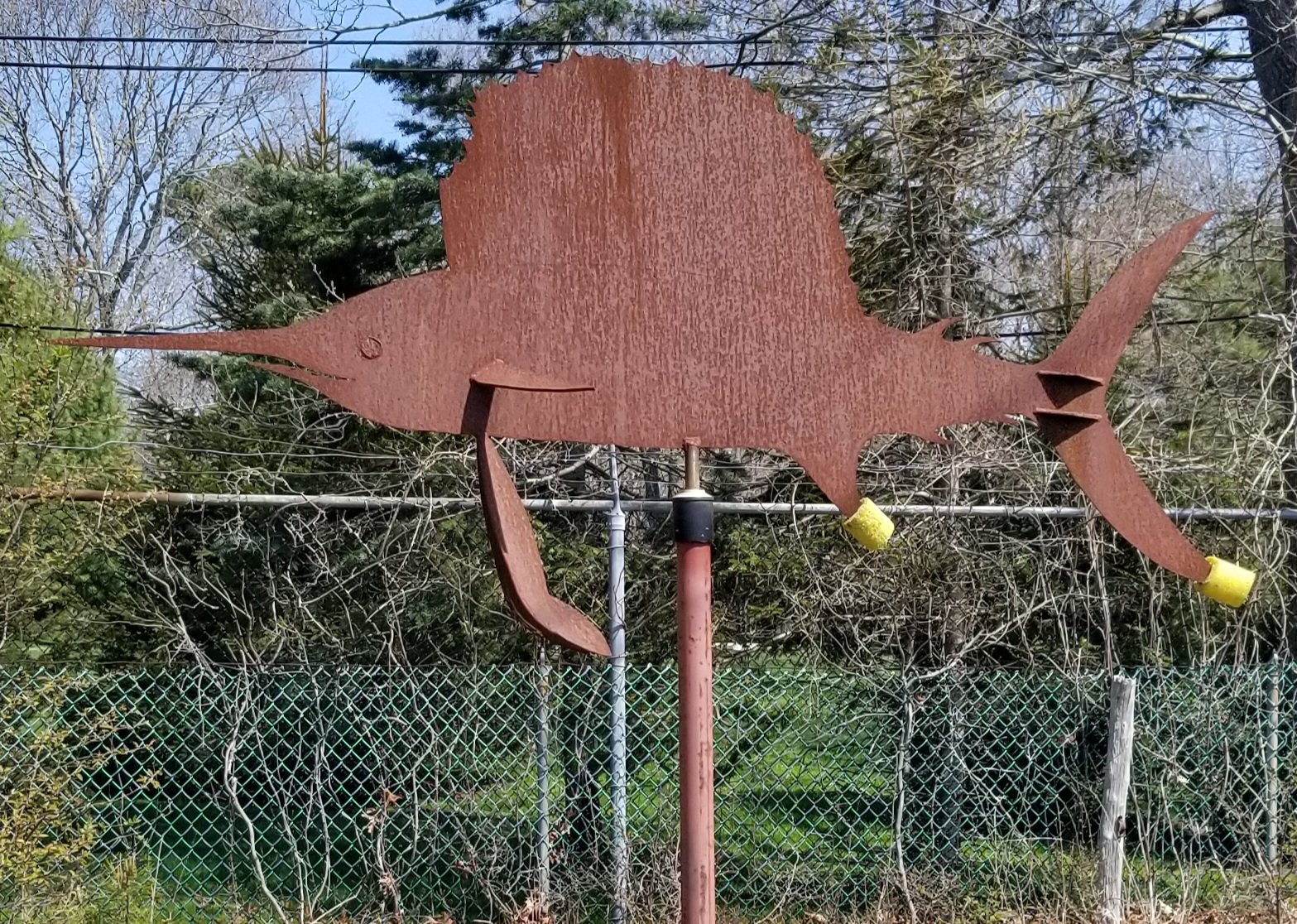 kinetic or stationary, stainless steel, overall length 52", height 17"